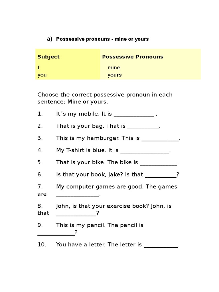 Worksheet #1 worksheet #2 worksheet #3. Basic possessive pronouns worksheet the most common possessive pronouns are listed in the table below. Worksheets pdf, handouts to print, printable exercises.